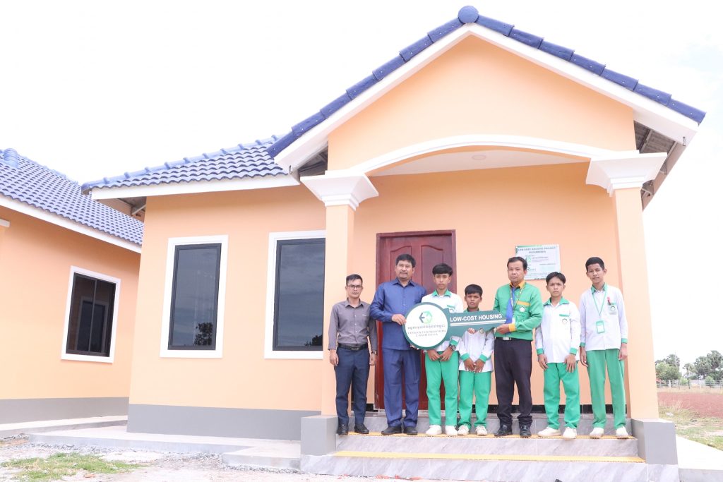 1)The 6 low-cost houses constructed in Kampong Thom Province, supporting poor households, including revert families